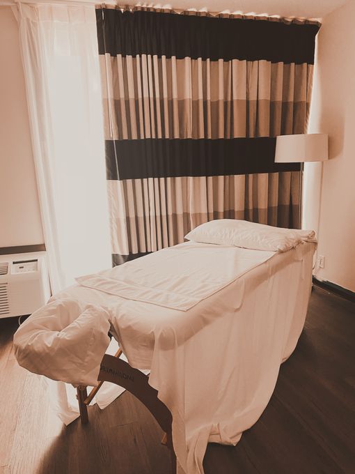 In-studio amenities: Candles, Free Parking, Hot Towels, Massage Table, Music, Private Restroom, Shower