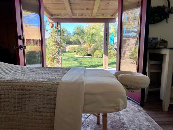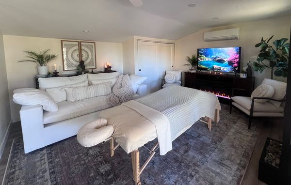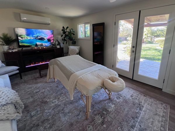 In-studio amenities: Bottled Water, Free Parking, Massage Table, Music, Private Restroom