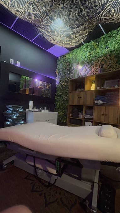 In-studio amenities: Aromatherapy Enhanced, Bottled Water, Heated Massage Table, Hot Towels, Massage Table, Metered Parking, Music, Private Restroom, Wine