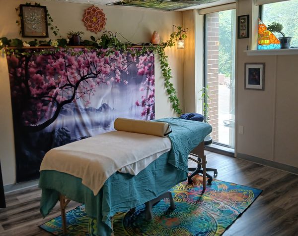 In-studio amenities: Drinking Water, Free Parking, Heated Massage Table, Massage Table, Music, Tea