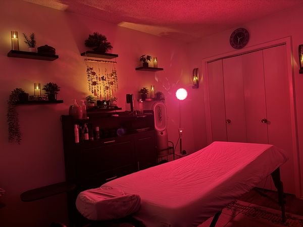 In-studio amenities: Aromatherapy Enhanced, Bottled Water, Free Parking, Heated Massage Table, Hot Towels, Massage Table, Music, Private Parking, Private Restroom, Tea