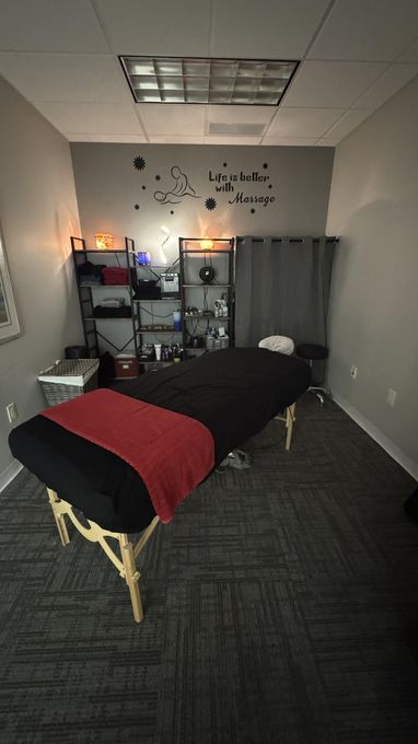 In-studio amenities: Aromatherapy Enhanced, Free Parking, Heated Massage Table, Hot Towels, Massage Table, Music