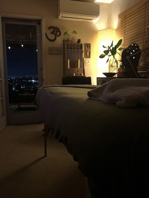 In-studio amenities: Candles, Free Parking, Heated Massage Table, Hot Towels, Massage Table, Music