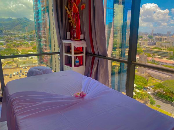 In-studio amenities: Drinking Water, Free Parking, Hot Towels, Massage Table, Music, Private Restroom, Secured Entrance/Doorman, Tea