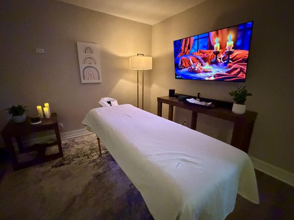 In-studio amenities: Candles, Drinking Water, Free Parking, Massage Table, Music, Private Parking, Private Restroom, Shower