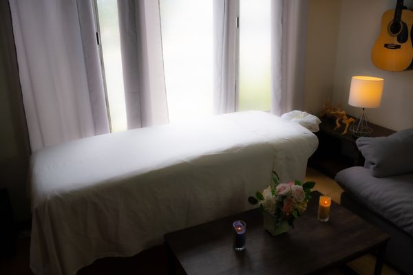 In-studio amenities: Drinking Water, Free Parking, Heated Massage Table, Massage Table, Music, Private Restroom
